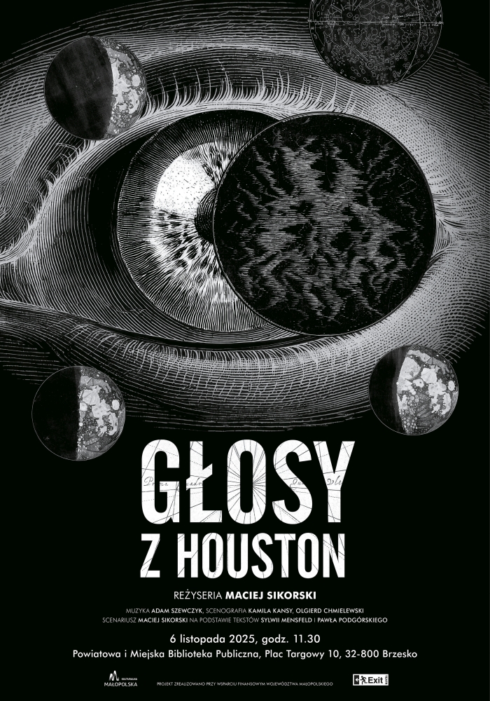 "Głosy z Houston" - to spektakl poetycko - muzyczny składający się z wierszy i piosenek autorstwa pacjentów szpitala psychiatrycznego im dr. Babińskiego w Krakowie. Tytułowe Houston to potoczna nazwa placówki, funkcjonująca od lat w środowisku pacjentów. Spektakl jest oddaniem głosu ludziom przeżywającym kryzysy psychiczne. Widzowie mają okazję niejako "wejść w głowę" osoby cierpiącej. To absolutnie niezwykłe doświadczenie - móc skonfrontować się z przeżyciami tych ludzi. Spektakl daje możliwość wzbudzania empatii i zrozumienia, którego te osoby tak bardzo potrzebują, a którego tak bardzo brakuje. Niezwykłe teksty pochodzą z tomów poezji Wydawnictwa "Rumak". Autorami jest trójka poetów, byłych pacjentów szpitala - Sylwia Mensfeld, Paweł Podgórski i Waldemar Gawron.